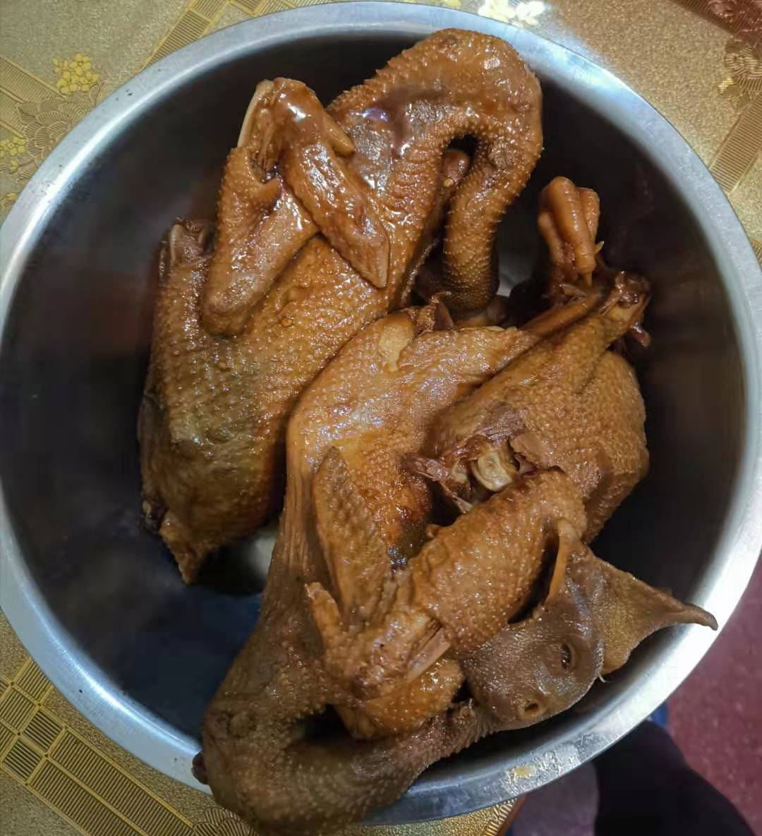 “冀府燒雞”是由河南洛陽冀偉,以祖?zhèn)骷妓嚸刂贫?。該燒雞以當?shù)赝岭u為原料,各種中藥材配料腌制,具有色、香、味、爛“四絕”特色。